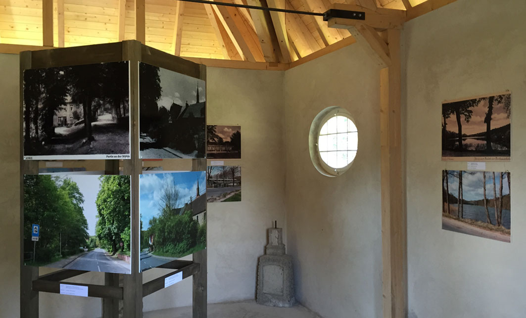 Die Ausstellung, in der vom Förderverein Lanke e.V. in unzähligen Stunden restaurierten Kapelle, gab den Blick auf zeitgenössische Fotografien und Postkarten frei und zeigte dazu die heutige Ansicht. Im Schlossgarten konnte man bei Kaffee und Kuchen verweilen. Nach 90 Minuten war alles ausverkauft!