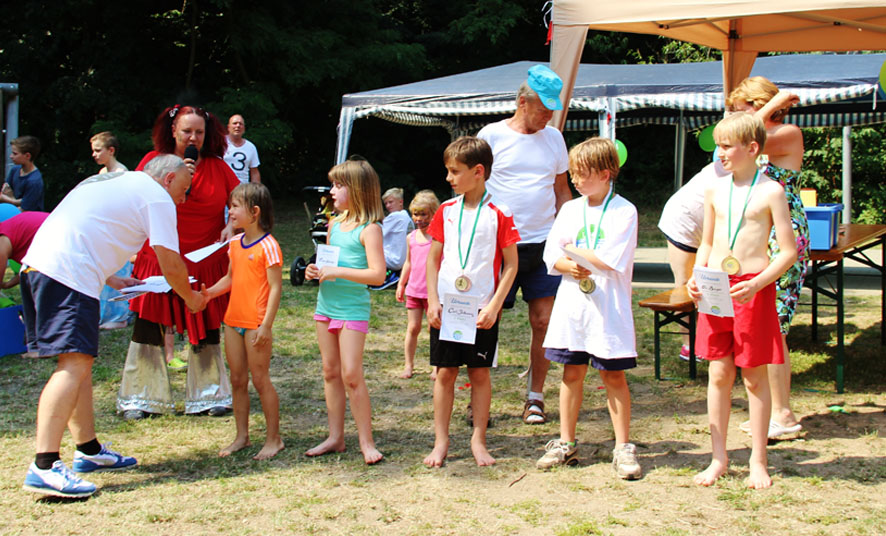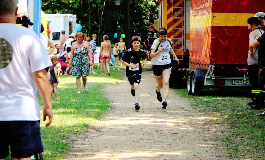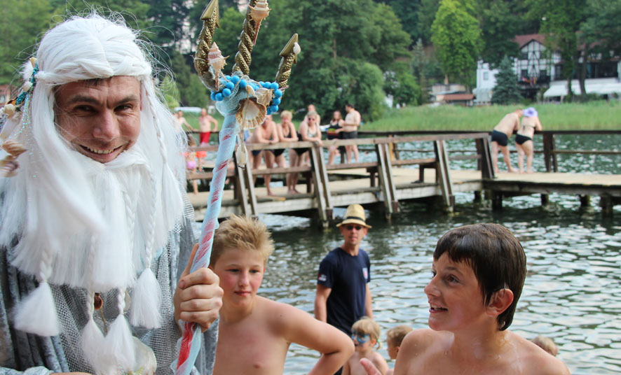 Bei gnadenloser Hitze von 37 Grad gingen 25 Freizeitsportler am 4. Juli 2015 an den Start und kamen auch ins Ziel! Respekt und herzlichen Glückwunsch! Bleibt weiter sportlich. Danach erschien Neptun aus den Tiefen des Obersees und taufte seine Jünger. Dazu konnten die Kinder im Aquaball auf dem Wasser laufen oder sich per Schminke ein neues Outfit geben lassen. Eine großartige Veranstaltung bei Knall-Wetter. Viele fleißige Helfer und Helferinnen haben diese Veranstaltung unter der Leitung von Klaus Brachlow zu einem tollen Erfolg gemacht, Danke!