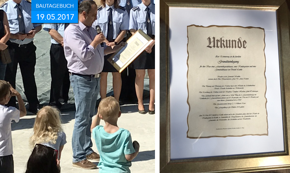 Nach ersten negativ beschiedenen Anfragen haben wir uns organisiert, unsere Strategie festgelegt und die Argumentationslinie formuliert. Es war nicht leicht, gab es doch einigen Widerstand. Für uns war das unverständlich, ist doch dieses Zentrumfür unsere Kinder, für unsere Freiwillige Feuerwehr, für unsere Vereine, für unsere Bürgerinnen und Bürger, ein Zentrum das Vorbildcharakter hat für kleine Dörfer wie unseres eines ist. Viel wird über Bildung, ehrenamtliche Tätigkeit und die Stärkung des ländlichen Raums gesprochen. Unser neues Gemeindezentrum ist die bauliche Umsetzung dieser Gedanken.