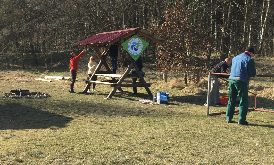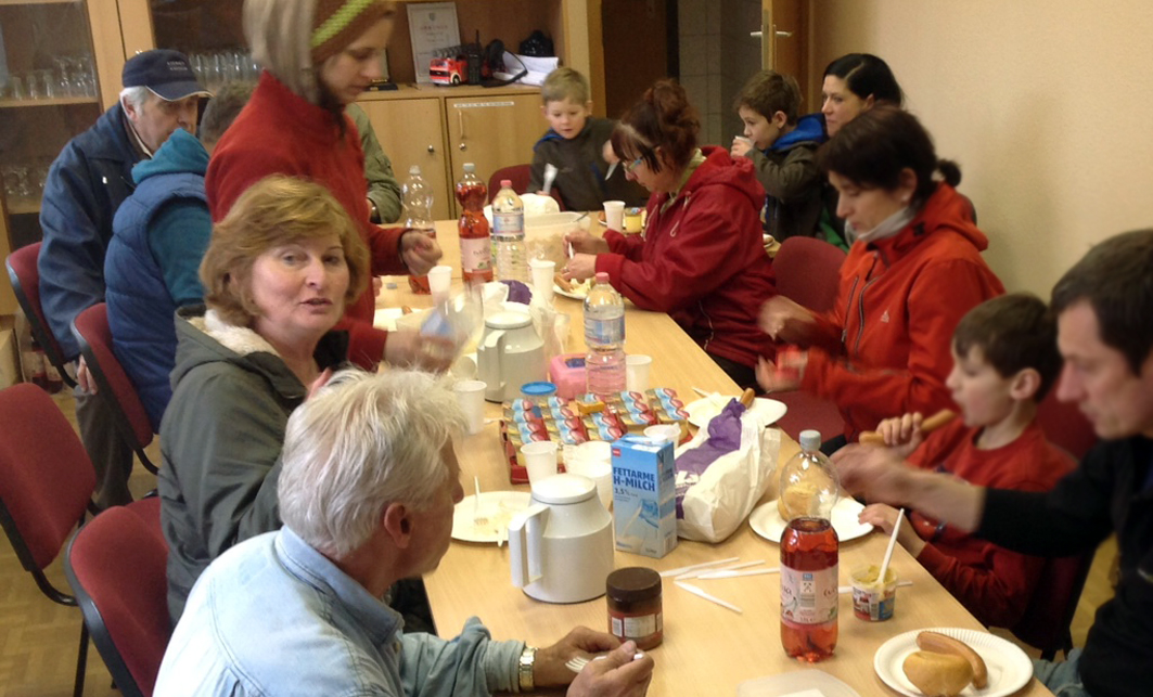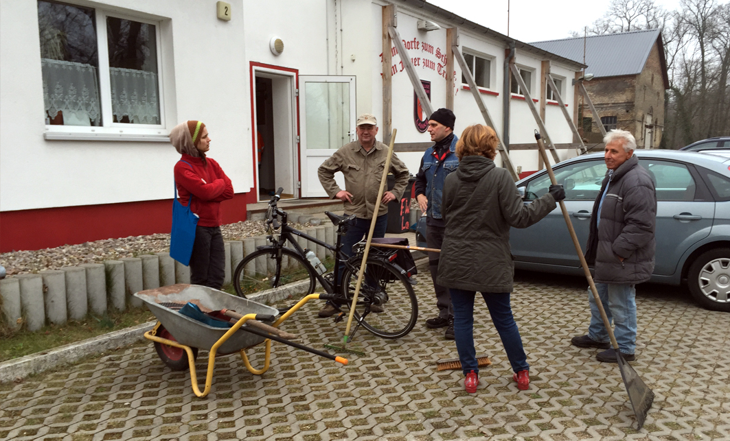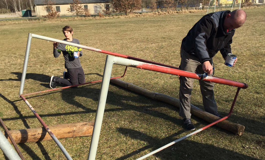 Mehr als 20 Erwachsene und 10 Kinder trafen sich am Wochenende zum Frühjahrsputz. Es wurde gefegt, geharkt, geschippt und gestrichen. Danach saß man bei Wurst, Salat, Brause und Kaffee noch zusammen.